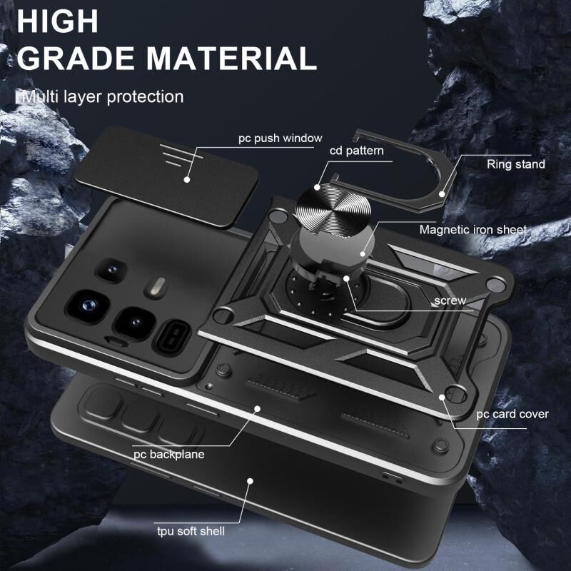 Θήκη τηλεφώνου για Infinix Note 50 Pro 4G, Σχεδιασμός με ολισθαίνουσα κάμερα, Υλικό TPU+PC (Μαύρο)