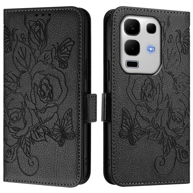 For Infinix Note 50s Embossed Rose RFID Anti-theft Leather Phone Case(Black)