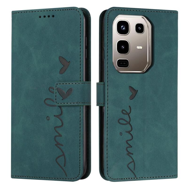For Infinix Note 50s Skin Feel Heart Embossed Leather Phone Case with Long Lanyard(Green)