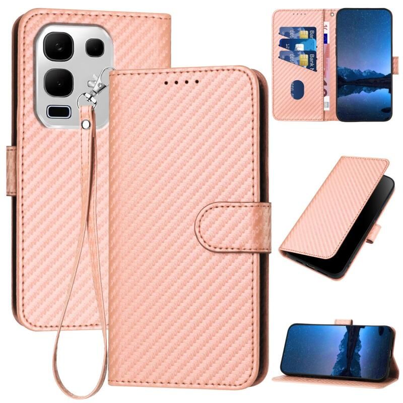 For Infinix Note 50s YX0070 Carbon Fiber Buckle Leather Phone Case with Lanyard(Pink)