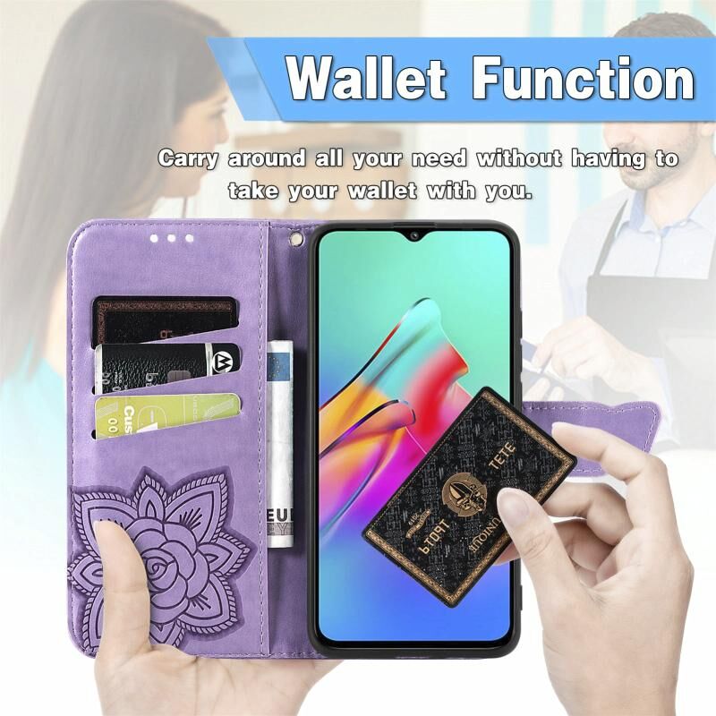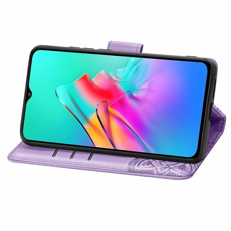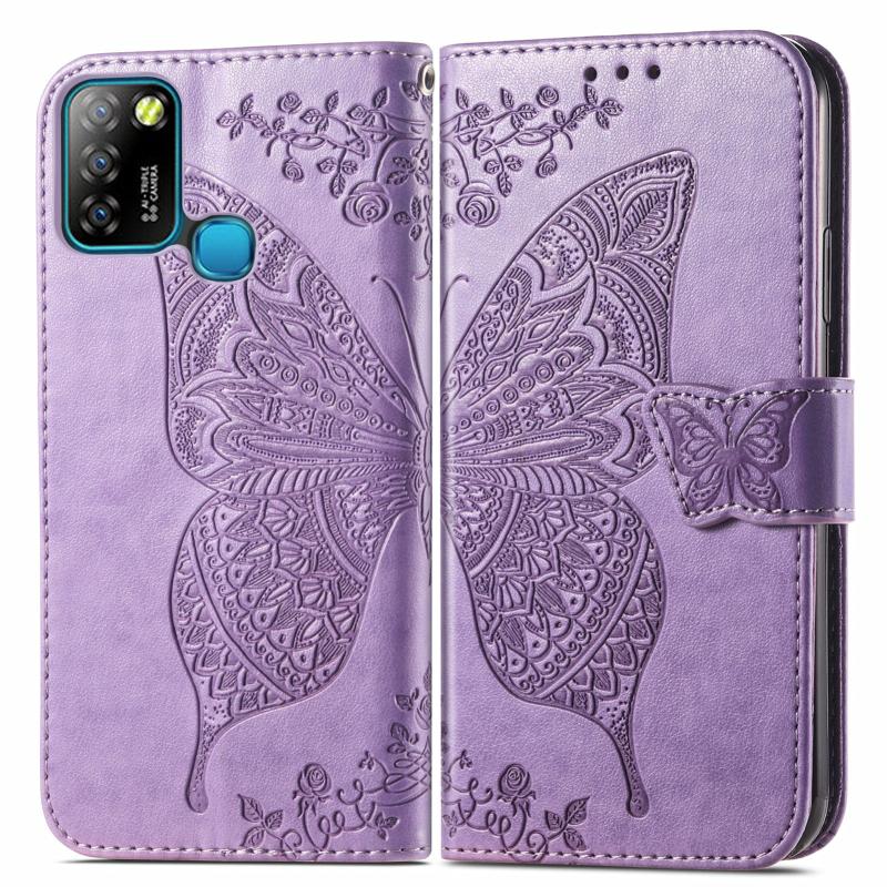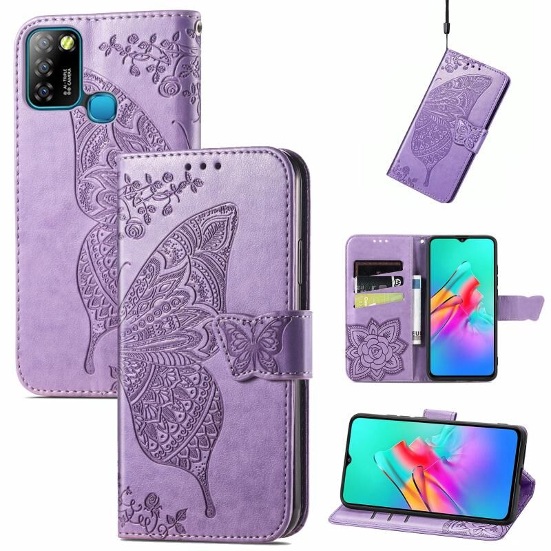 Θήκη για Infinix Smart 5 με σχέδιο πεταλούδας, λουλουδιών, ανάγλυφο, οριζόντια, από δέρμα με βάση στήριξης, θήκες για κάρτες, πορτοφόλι & λουρί (ανοιχτό μωβ)