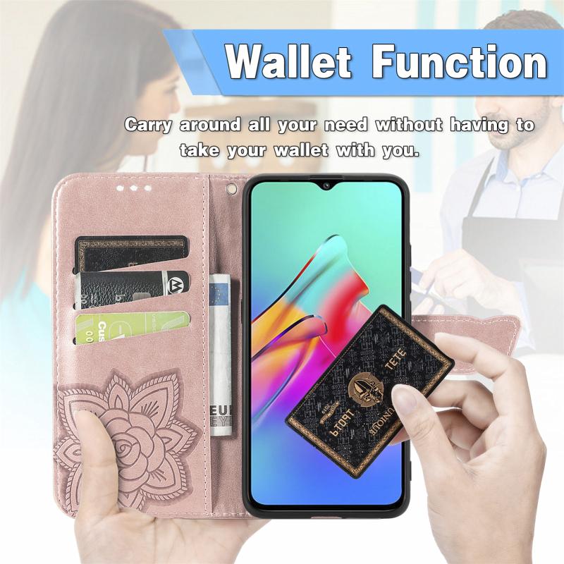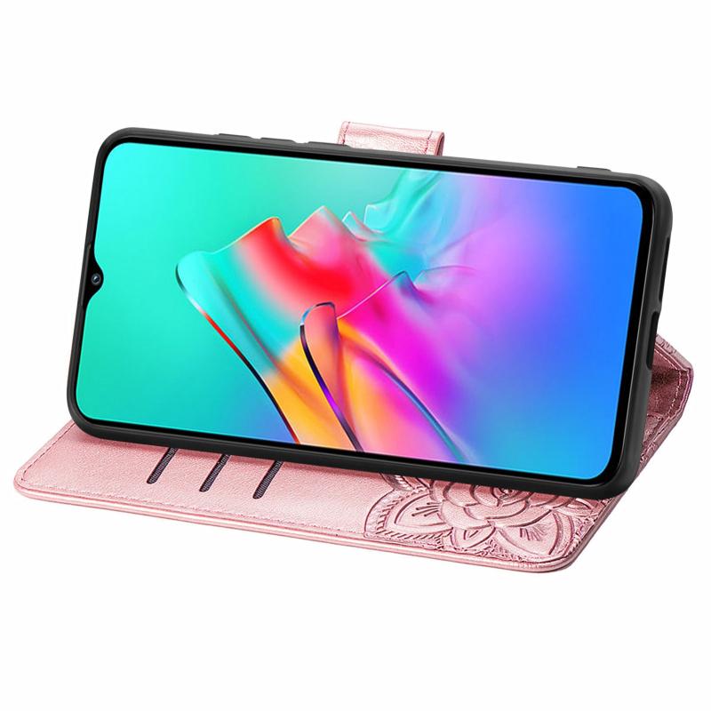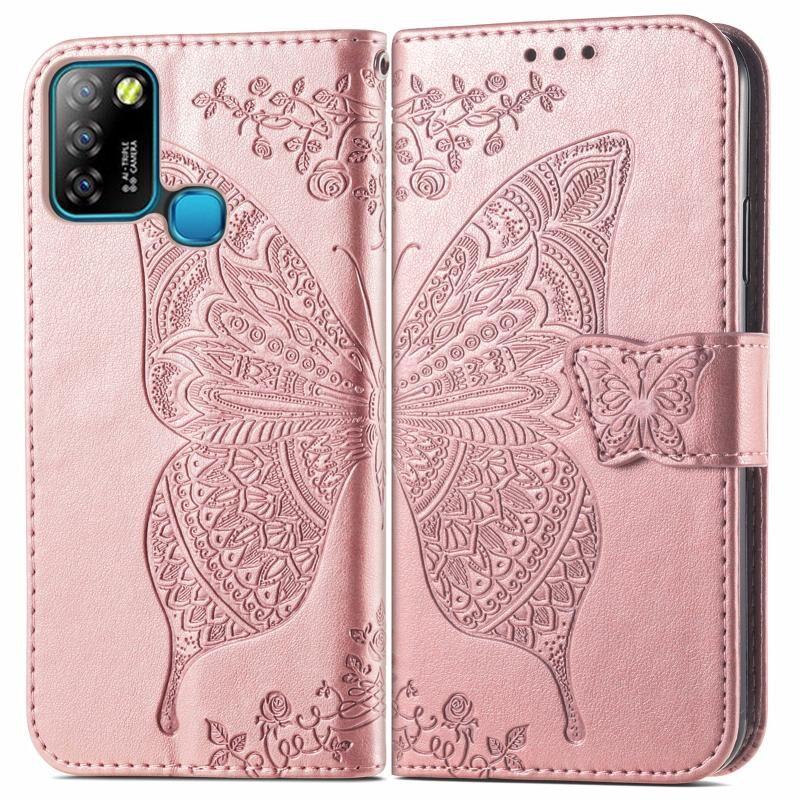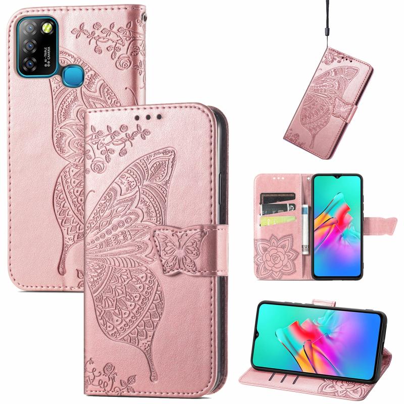 Θήκη για Infinix Smart 5 με σχέδιο πεταλούδας, λουλουδιών, ανάγλυφο, οριζόντια, από δέρμα με βάση στήριξης, θήκες για κάρτες, πορτοφόλι & λουρί (Ροζ χρυσός)