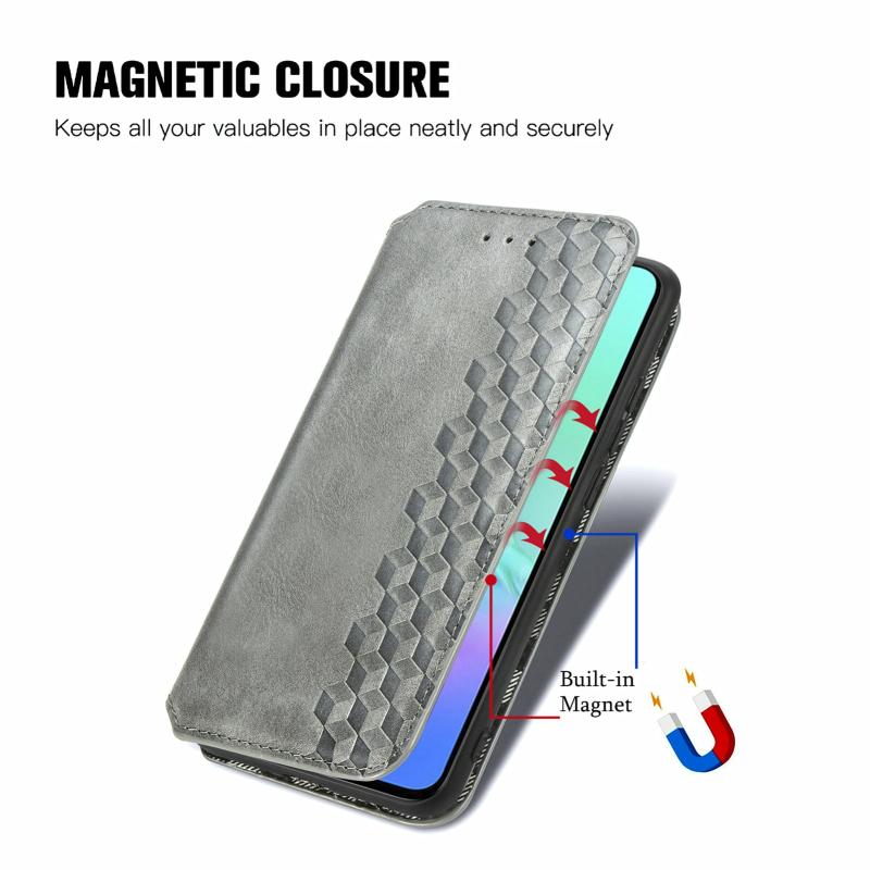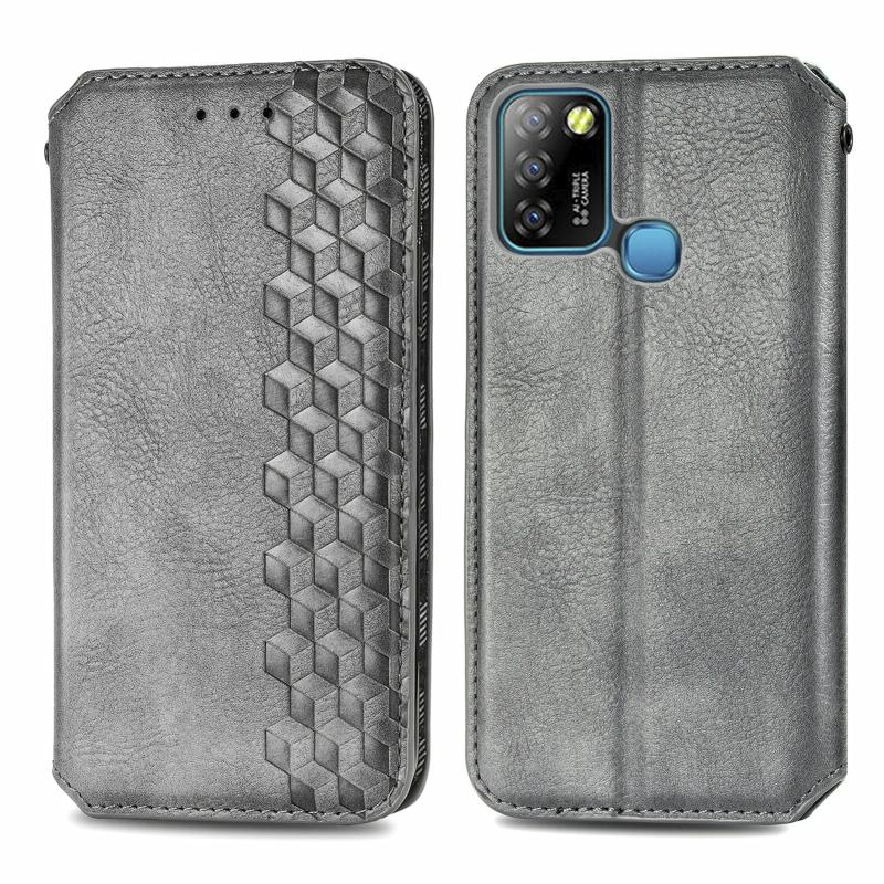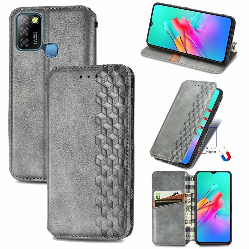 For Infinix Smart 5 Cubic Grid Pressed Horizontal Flip Magnetic PU Leather Case with Holder & Card Slots & Wallet(Grey)