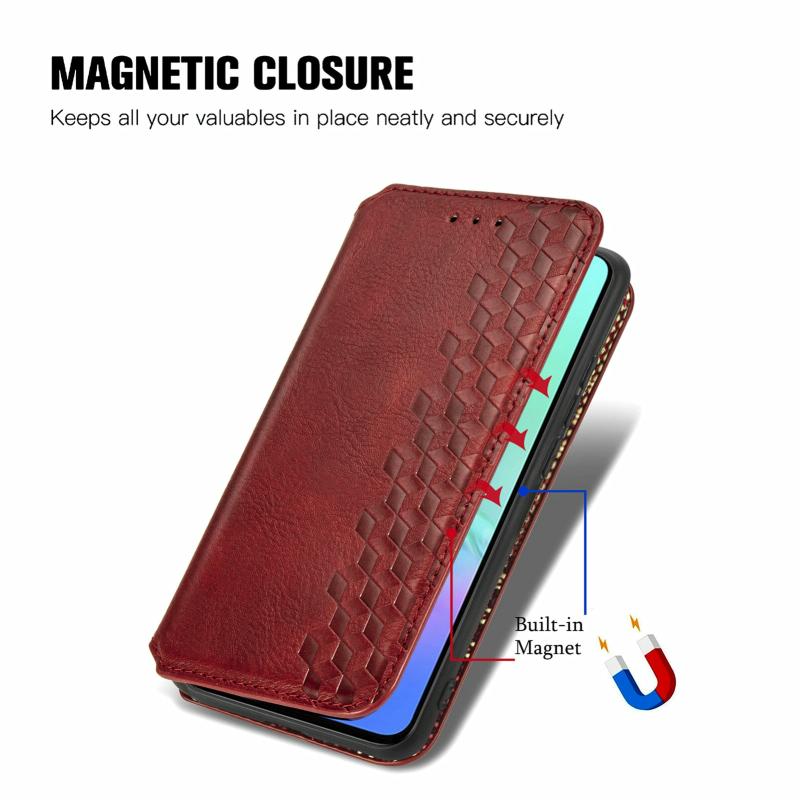 For Infinix Smart 5 Cubic Grid Pressed Horizontal Flip Magnetic PU Leather Case with Holder & Card Slots & Wallet(Red)
