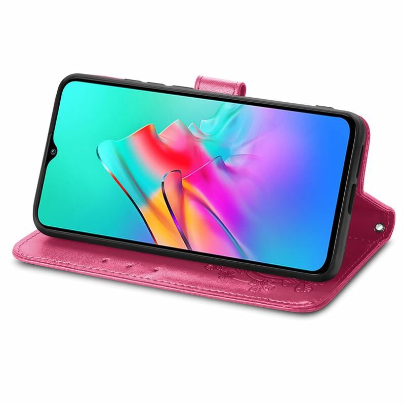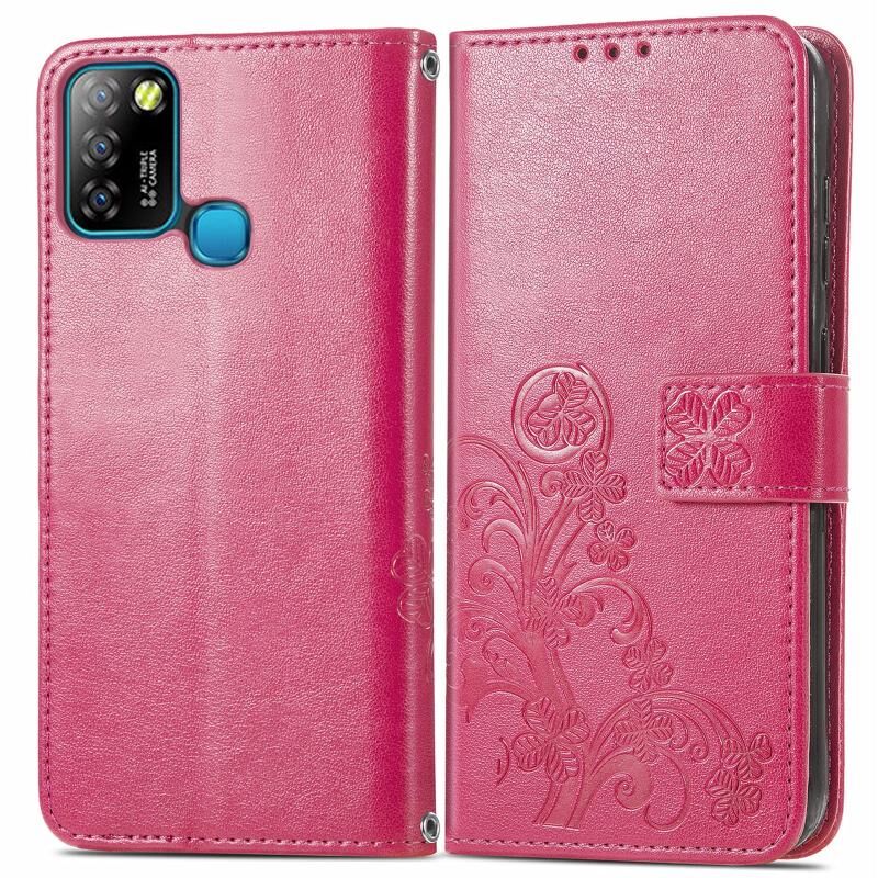 Για το Infinix Smart 5 Four-leaf Clasp ανάγλυφη αγκράφα Κινητό τηλέφωνο προστασία δερμάτινη θήκη με κορδόνι & υποδοχή για κάρτες & πορτοφόλι & λειτουργία βραχίονα (Magenta)