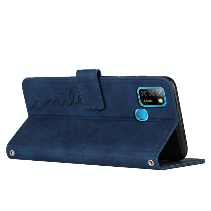 Για Infinix Smart 5 / Hot 10 Lite δέρμα αίσθηση καρδιά μοτίβο δερμάτινη θήκη τηλεφώνου με κορδόνι (μπλε)