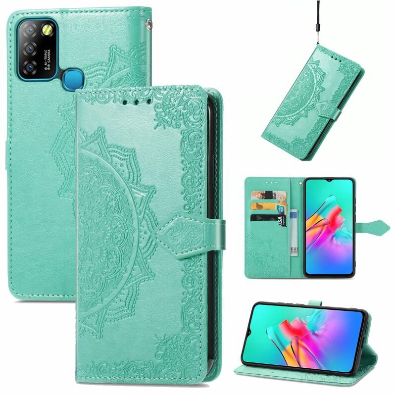 Για Infinix Smart 5 Mandala ανάγλυφο μοτίβο οριζόντια Flip δερμάτινη θήκη με κάτοχο & υποδοχές για κάρτες & πορτοφόλι & κορδόνι (πράσινο)