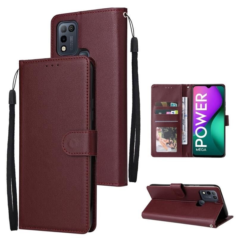 Θήκη Infinix Smart 5 Πολυλειτουργική Οριζόντια Δερμάτινη με Τρεις Θέσεις για Κάρτες (Κόκκινο Κρασί)