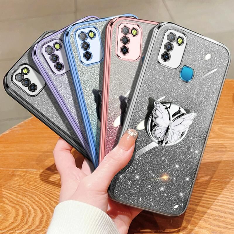 Για Infinix Smart 5 Επιμεταλλωμένο διαβάθμιση Glitter πεταλούδα κάτοχος TPU τηλέφωνο υπόθεση (μαύρο)