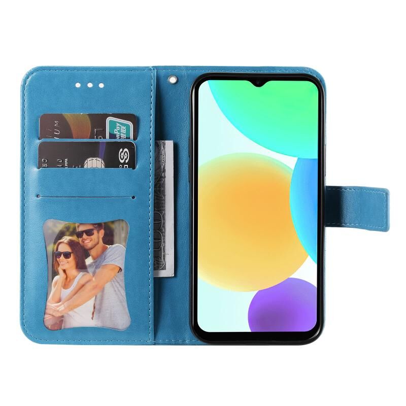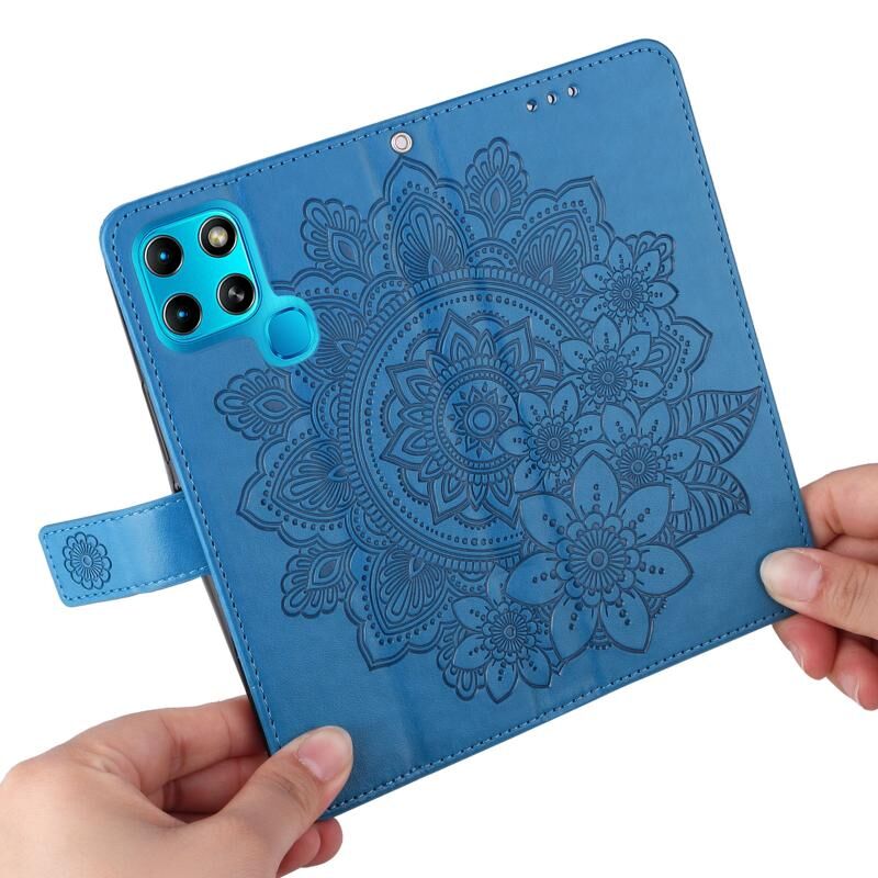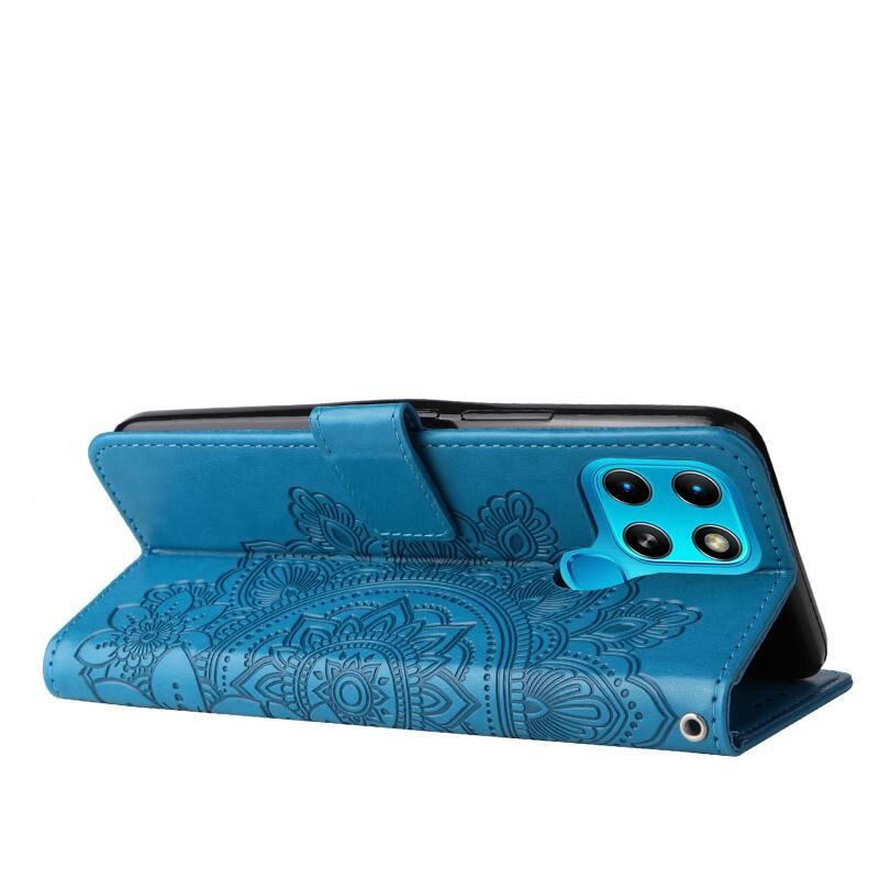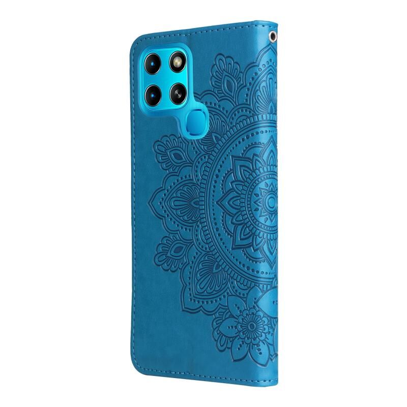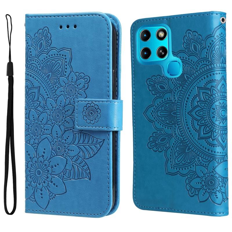 Για Infinix Smart 6 7-πέταλο λουλούδια ανάγλυφο Flip υπόθεση τηλεφώνου δέρμα (μπλε)