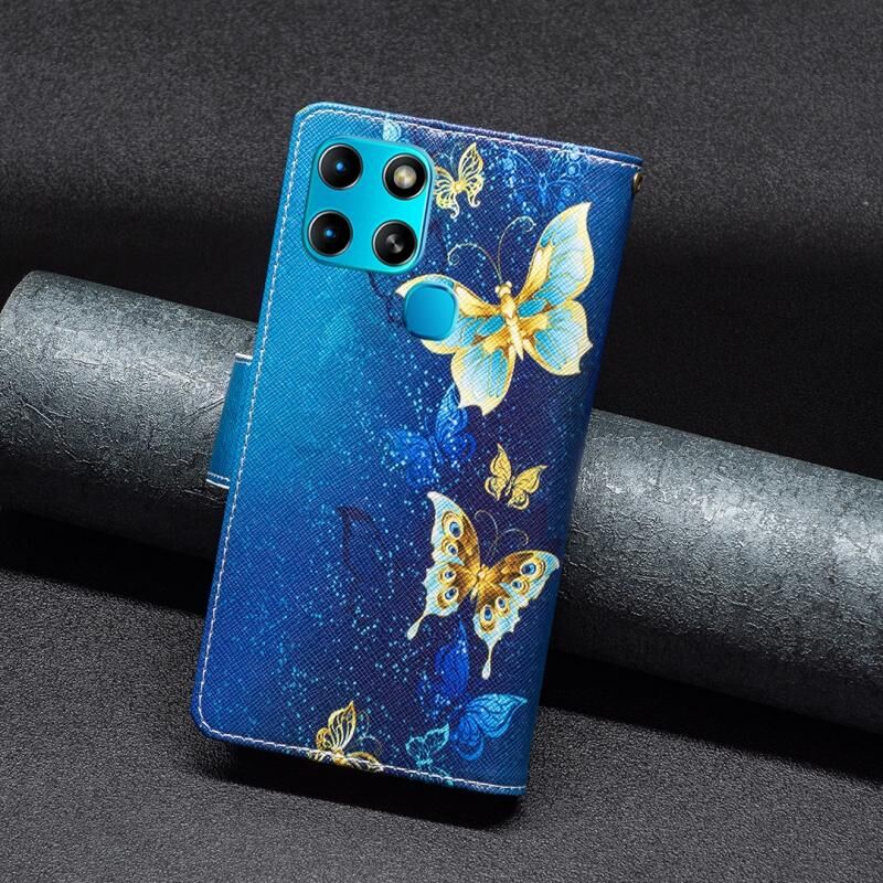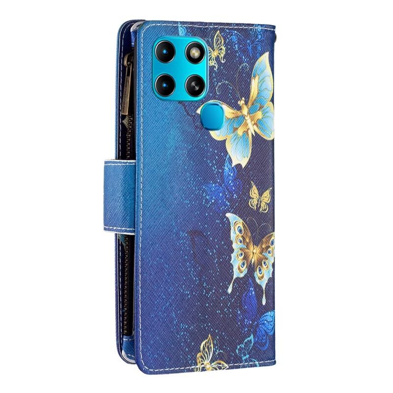 Θήκη τηλεφώνου δερμάτινη με φερμουάρ και σχέδιο πολύχρωμης ζωγραφικής για Infinix Smart 6 (Μωβ Πεταλούδα)