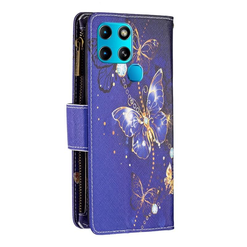 Θήκη τηλεφώνου δερμάτινη με φερμουάρ και σχέδιο πολύχρωμης ζωγραφικής για Infinix Smart 6 (Μωβ Πεταλούδα)