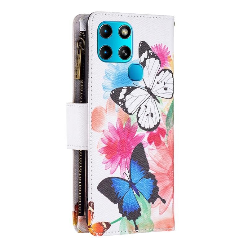 Θήκη τηλεφώνου δερμάτινη με φερμουάρ και πολύχρωμο σχέδιο για Infinix Smart 6 (Δύο Πεταλούδες)