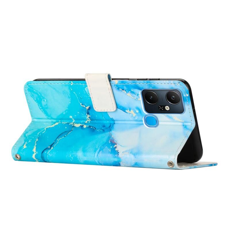 For Infinix Smart 6 Plus Crossbody Painted Marble Pattern Leather Phone Case(Blue Green)