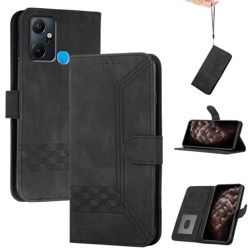 Για Infinix Smart 6 Plus Ινδία Cubic δέρμα αίσθηση Flip δέρμα τηλέφωνο υπόθεση (μαύρο)