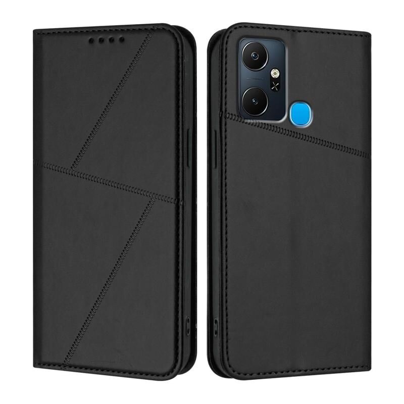 For Infinix Smart 6 Plus India Strong Magnetic Frosted Flip Leather Phone Case(Black)