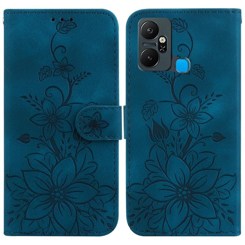 For Infinix Smart 6 Plus Lily Embossed Leather Phone Case(Dark Blue)