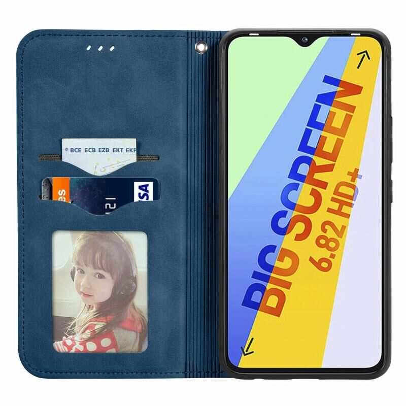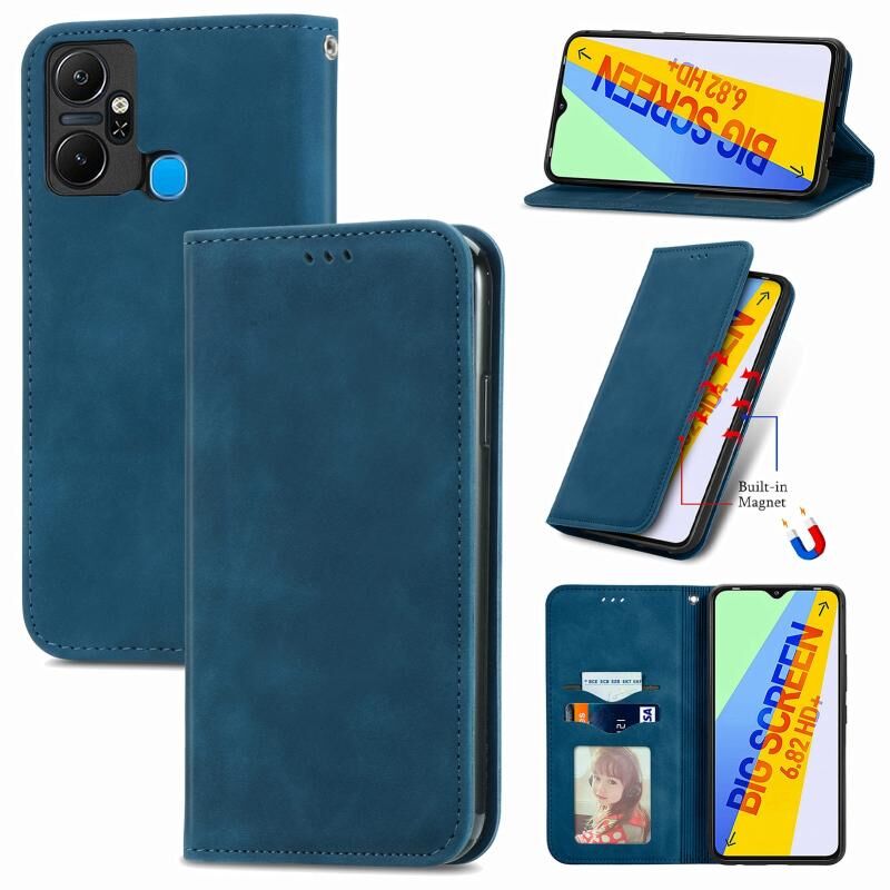 Για Infinix Smart 6 Plus Retro δέρμα αίσθηση μαγνητική Flip δέρμα τηλέφωνο υπόθεση (μπλε)