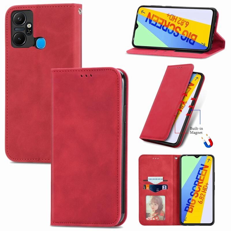 Για Infinix Smart 6 Plus Retro δέρμα αίσθηση μαγνητική Flip δέρμα τηλέφωνο υπόθεση (κόκκινο)
