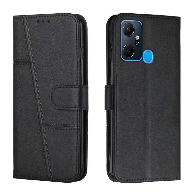 Για Infinix Smart 6 Plus ραφή μοσχάρι υφή πόρπη δερμάτινη θήκη τηλεφώνου (μαύρο)