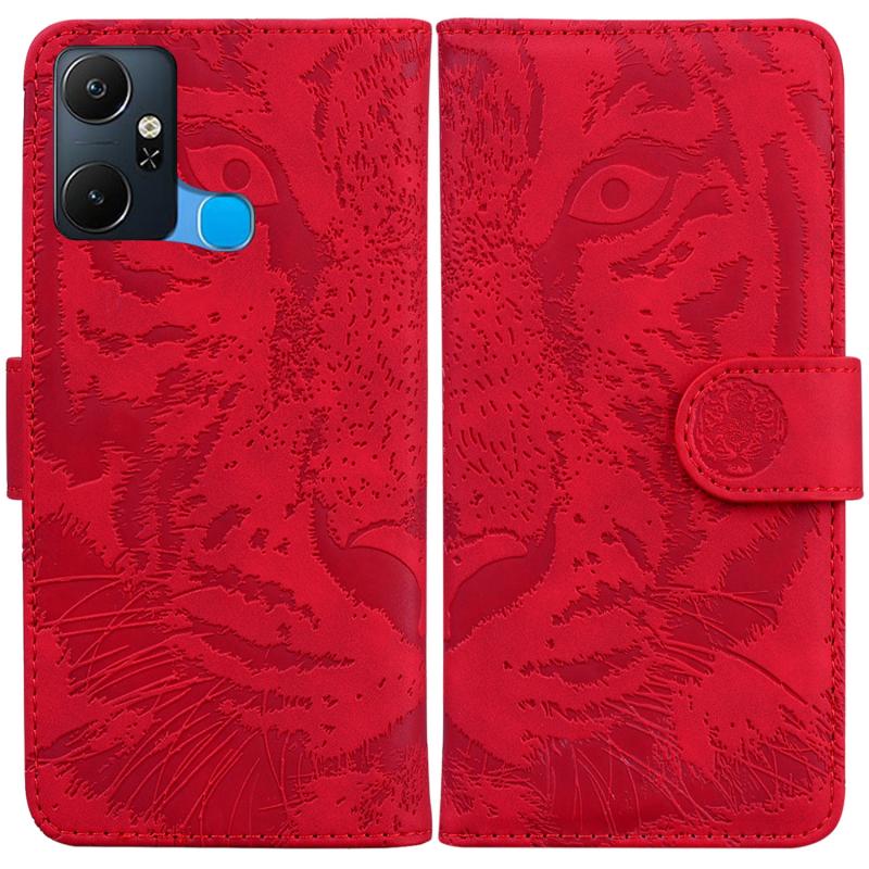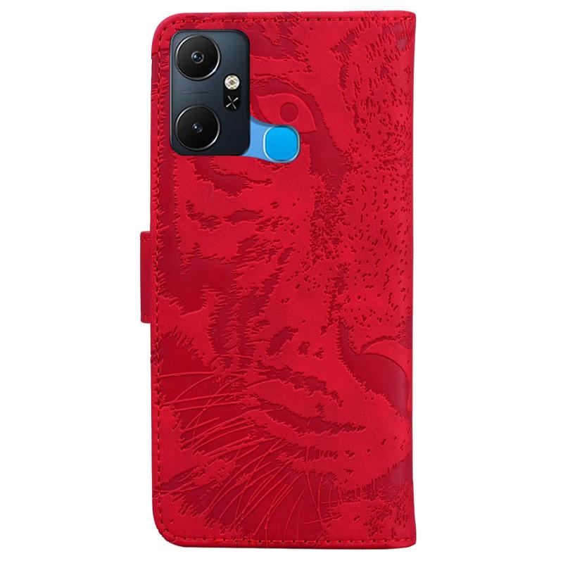 Θήκη τηλεφώνου από δέρμα με οριζόντιο άνοιγμα για Infinix Smart 6 Plus με ανάγλυφο σχέδιο τίγρης (Ροζ)