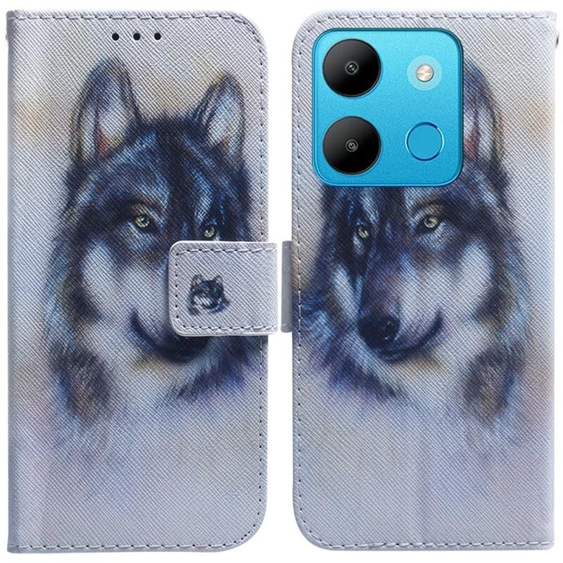 For Infinix Smart 7 African Coloured Drawing Flip Leather Phone Case(White Wolf)