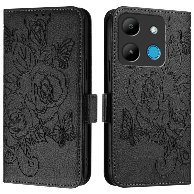 Για Infinix Smart 7 ανάγλυφο Rose RFID Anti-theft δερμάτινη θήκη τηλεφώνου (Μαύρο)