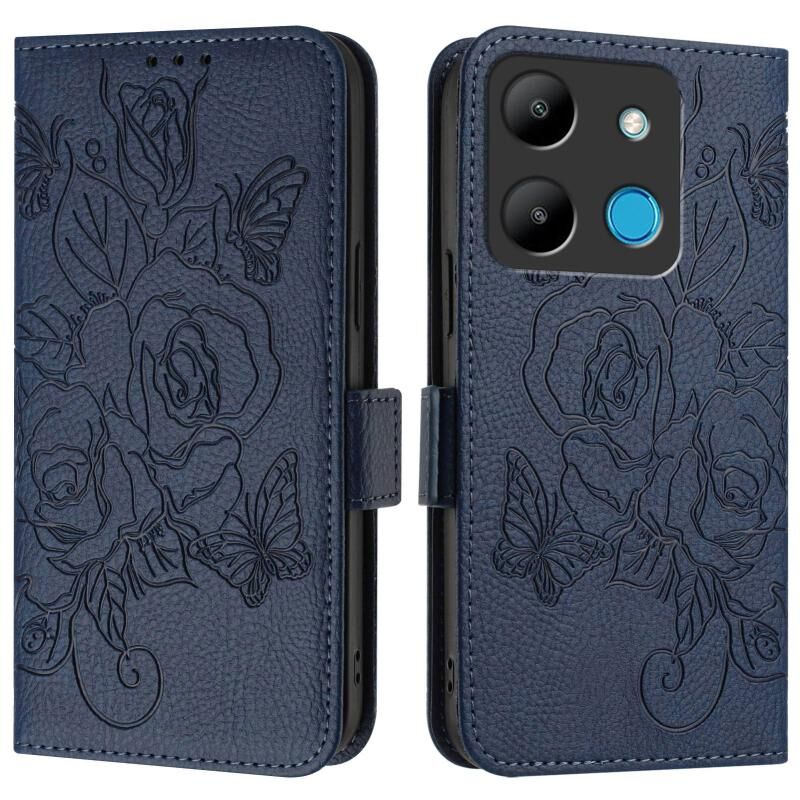 Για Infinix Smart 7 ανάγλυφο Rose RFID Anti-theft δερμάτινη θήκη τηλεφώνου (σκούρο μπλε)