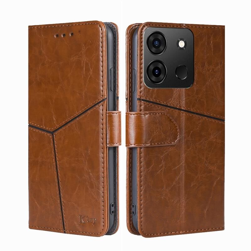 Για Infinix Smart 7 γεωμετρική ραφή Flip υπόθεση τηλεφώνου δέρμα (ανοιχτό καφέ)