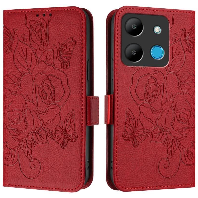 Για Infinix Smart 7 HD / 7 ινδική / 7 Plus ανάγλυφο Rose RFID αντικλεπτική δερμάτινη θήκη τηλεφώνου (κόκκινο)
