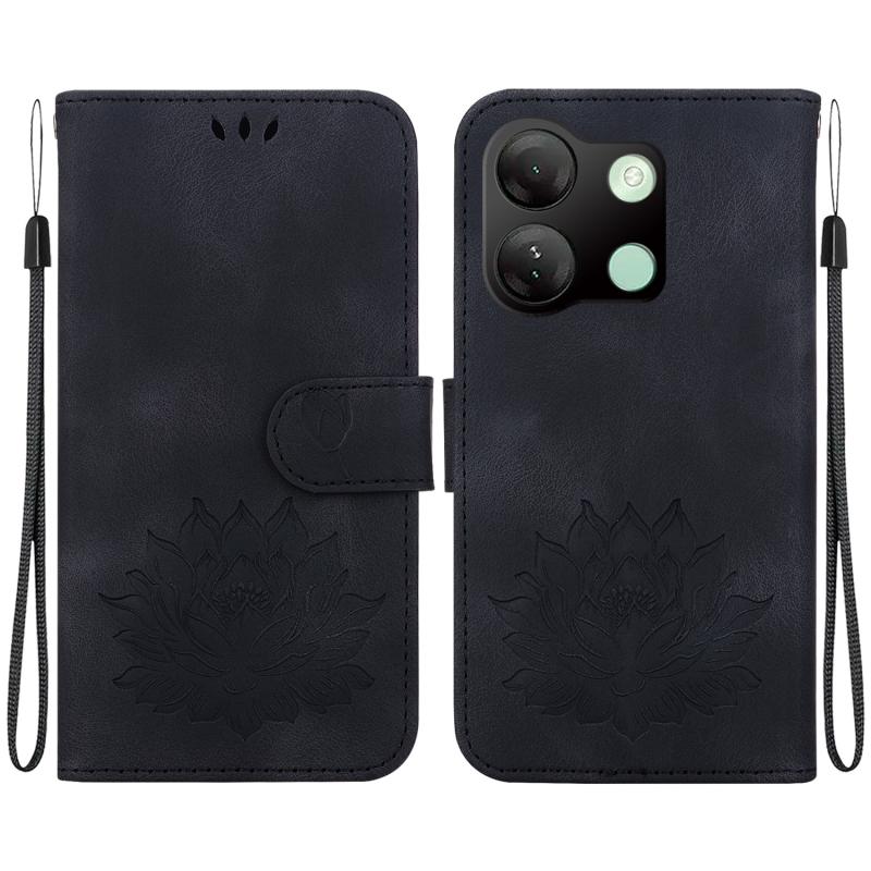 For Infinix Smart 7 HD Lotus Embossed Leather Phone Case(Black)