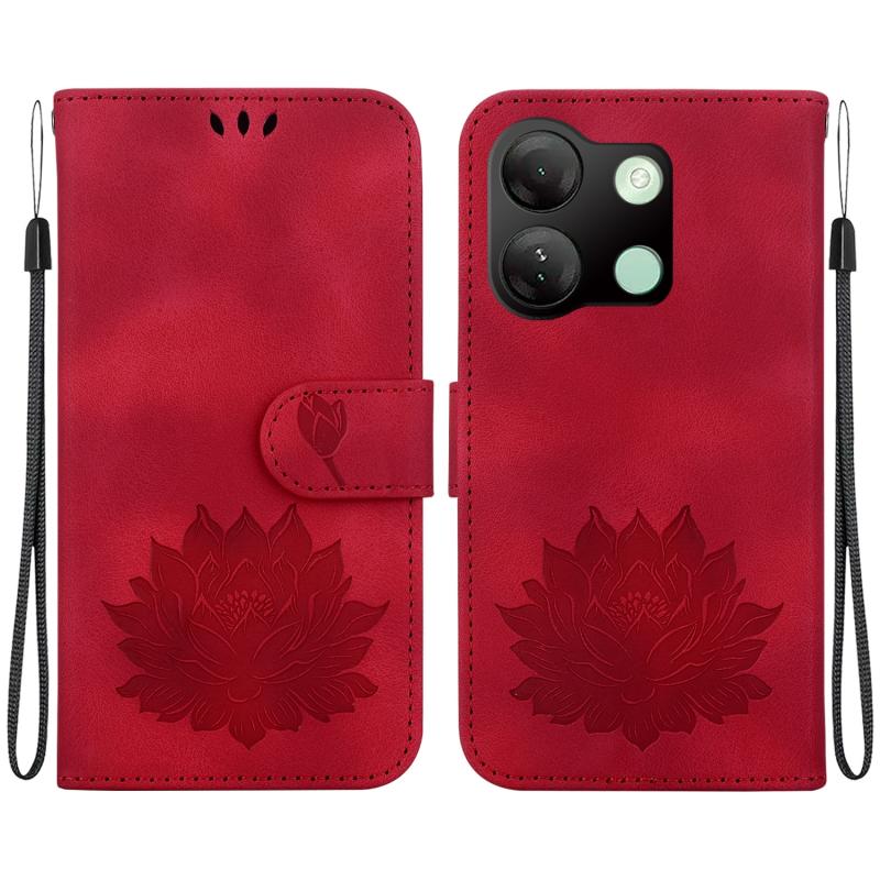 For Infinix Smart 7 HD Lotus Embossed Leather Phone Case(Red)