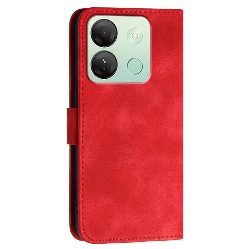 For Infinix Smart 7 India Grid Butterfly Embossed Pattern Leather Phone Case with Lanyard(Red)