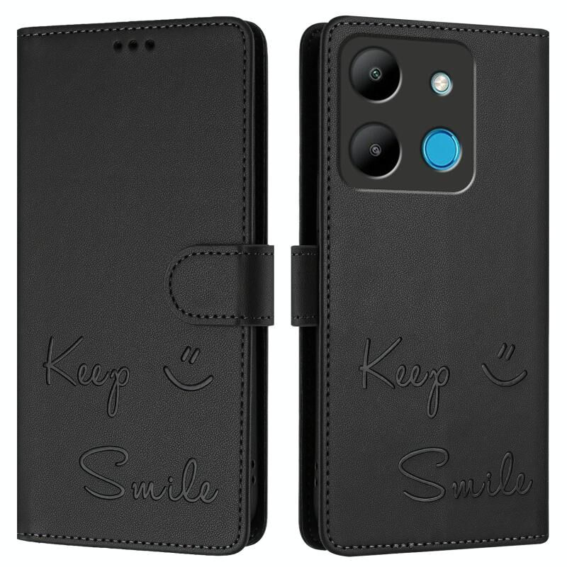 Για Infinix Smart 7 Ινδία χαμόγελο ανάγλυφο RFID δερμάτινη θήκη τηλεφώνου (Μαύρο)