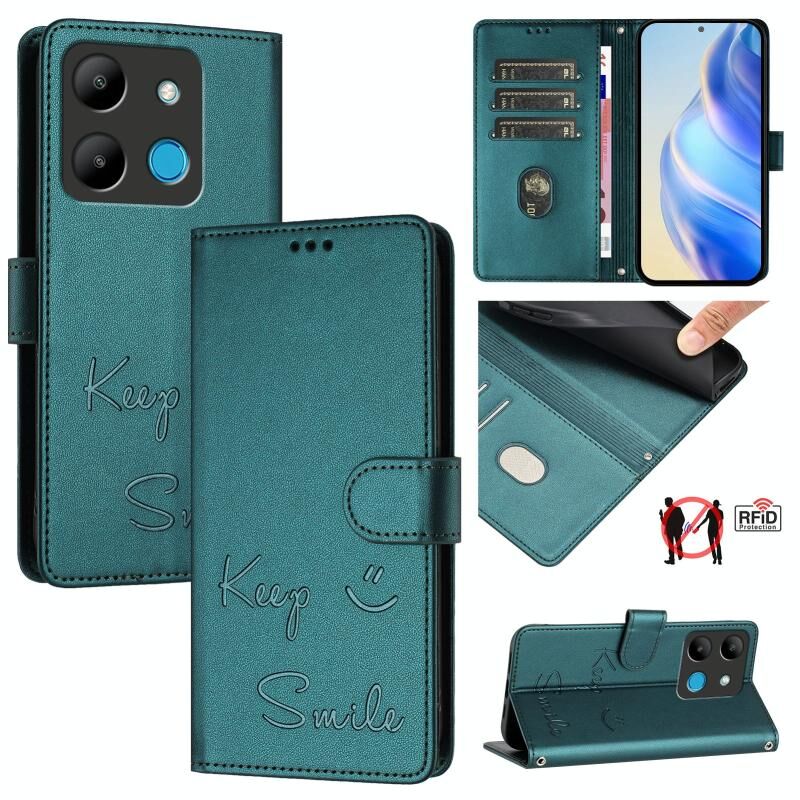 Για Infinix Smart 7 Ινδία χαμόγελο ανάγλυφο RFID δερμάτινη θήκη τηλεφώνου (Peacock Green)