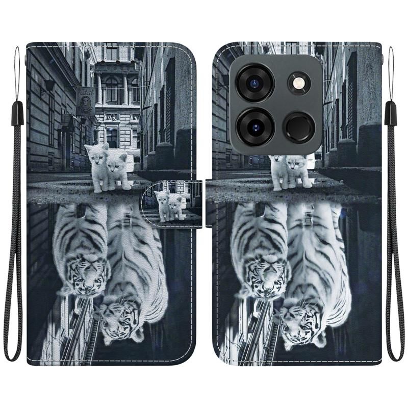 Θήκη τηλεφώνου από δέρμα με σχέδιο και χρώμα κρυστάλλου για Infinix Smart 7 (Αντανάκλαση Γάτας Τίγρης)