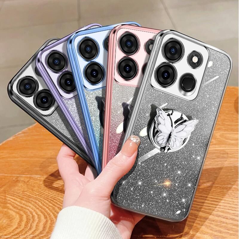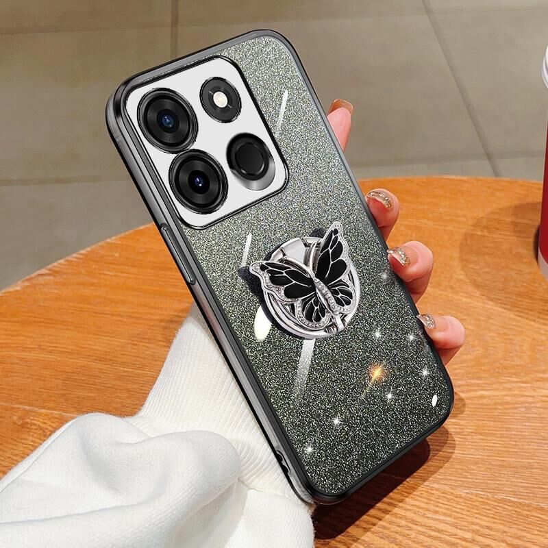 Για Infinix Smart 7 Επιμεταλλωμένο διαβάθμιση Glitter πεταλούδα κάτοχος TPU τηλέφωνο υπόθεση (μαύρο)