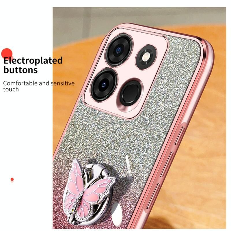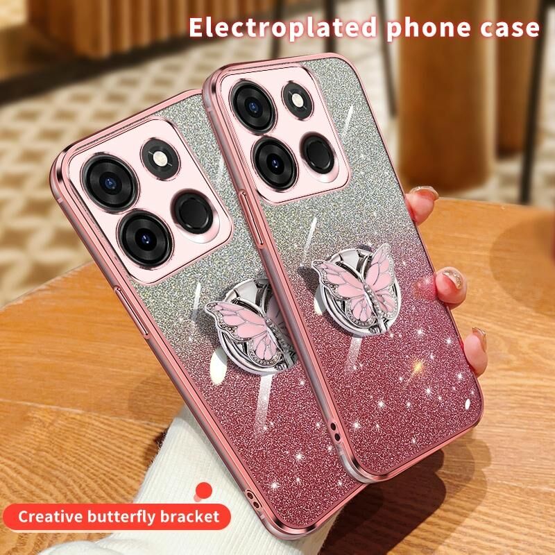Για Infinix Smart 7 Επιμεταλλωμένο διαβάθμιση Glitter πεταλούδα κάτοχος TPU τηλέφωνο υπόθεση (ασημί)