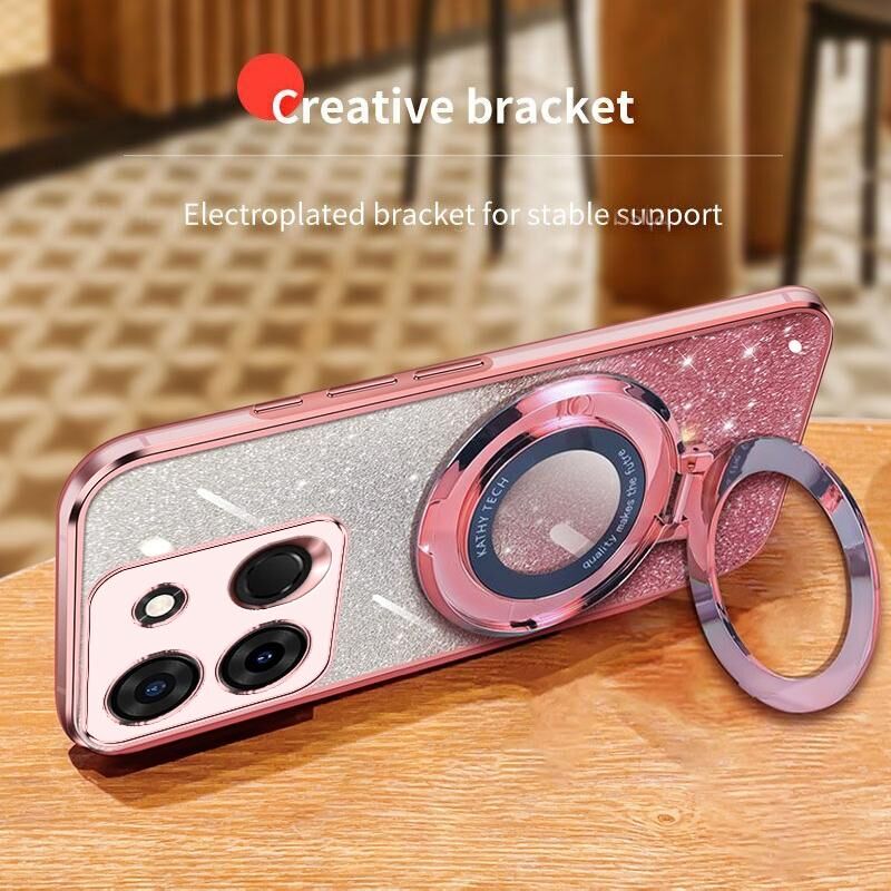 Για Infinix Smart 7 Επιμεταλλωμένο διαβάθμιση Glitter στρογγυλό κάτοχος TPU τηλέφωνο υπόθεση (μωβ)