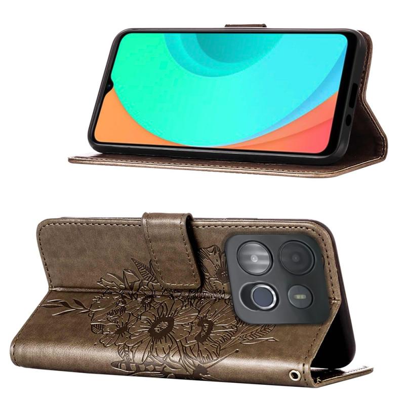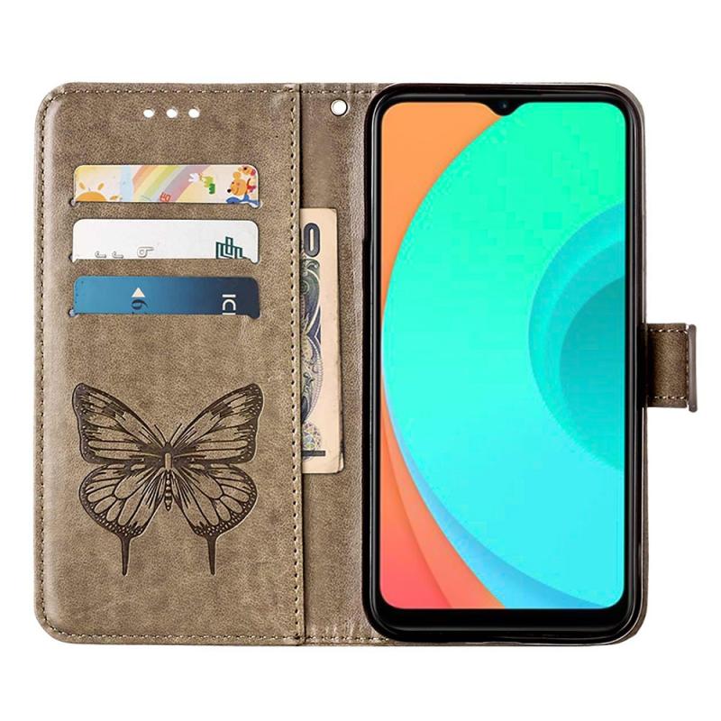 Θήκη τηλεφώνου από δέρμα με ανάγλυφο σχέδιο πεταλούδας, τύπου flip, για Infinix Smart 7 X6515 (Γκρι)