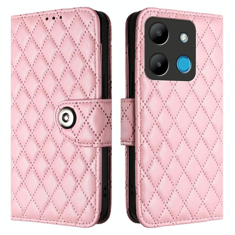 Για το Infinix Smart 7 X6515 Rhombic Texture Flip δερμάτινη θήκη τηλεφώνου με κορδόνι (ροζ)