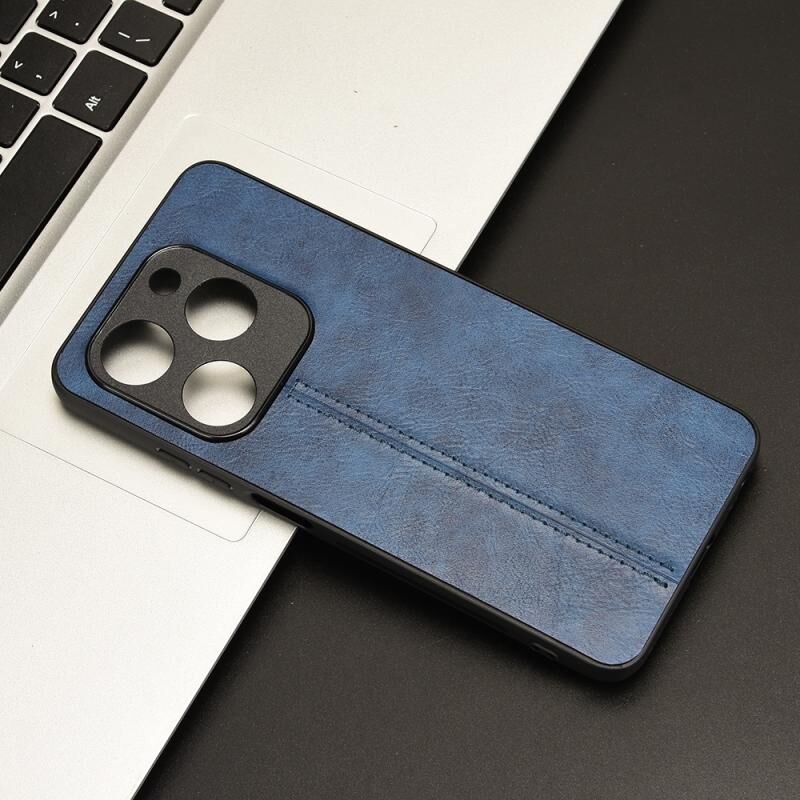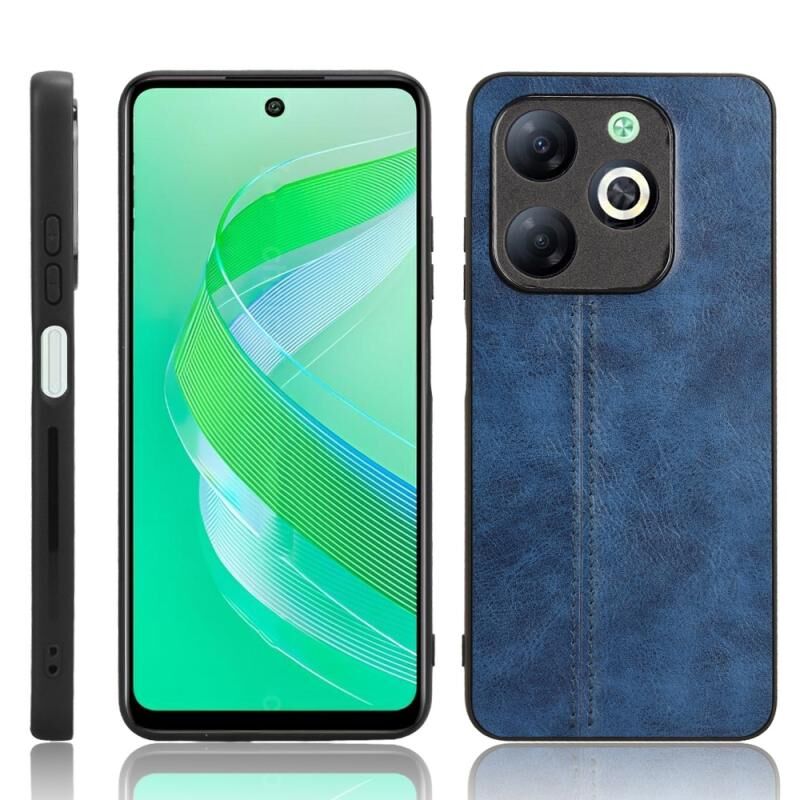 For Infinix Smart 8 Cow Pattern Sewing Back Cover Phone Case(Blue)