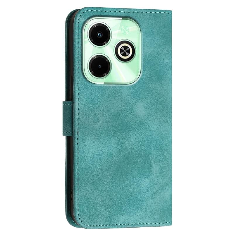 For Infinix Smart 8 Plus 4G Grid Butterfly Embossed Pattern Leather Phone Case with Lanyard(Light Blue)
