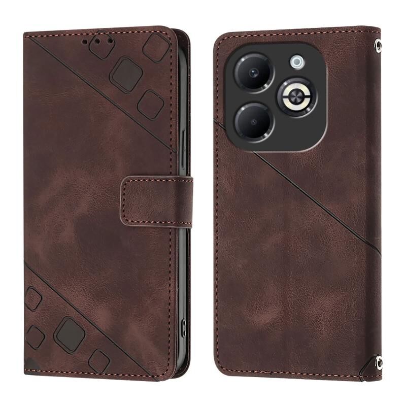 Για το Infinix Smart 8 Plus / Smart 8 Pro Skin Feel ανάγλυφη δερμάτινη θήκη τηλεφώνου (καφέ)