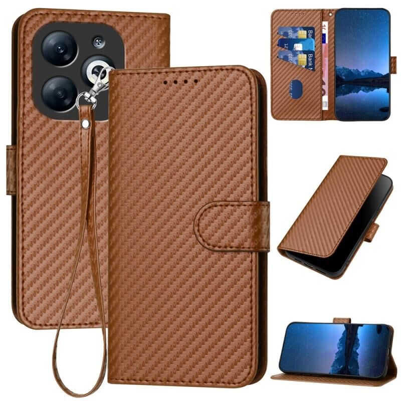 Για Infinix Smart 8 Pro YX0070 Carbon Fiber πόρπη δερμάτινη θήκη τηλεφώνου με κορδόνι (καφέ)