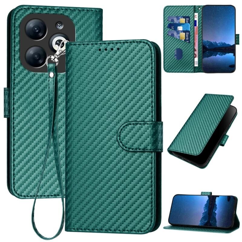 Για Infinix Smart 8 Pro YX0070 Carbon Fiber πόρπη δερμάτινη θήκη τηλεφώνου με κορδόνι (σκούρο πράσινο)