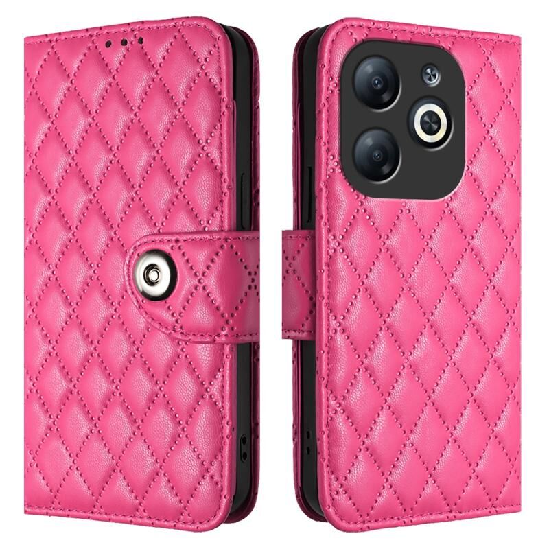 Για το Infinix Smart 8 Rhombic Texture Flip δερμάτινη θήκη τηλεφώνου με κορδόνι (Rose Red)