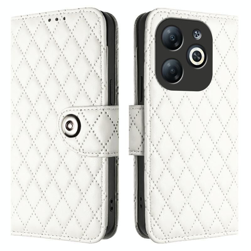 Για το Infinix Smart 8 Rhombic Texture Flip δερμάτινη θήκη τηλεφώνου με κορδόνι (λευκό)