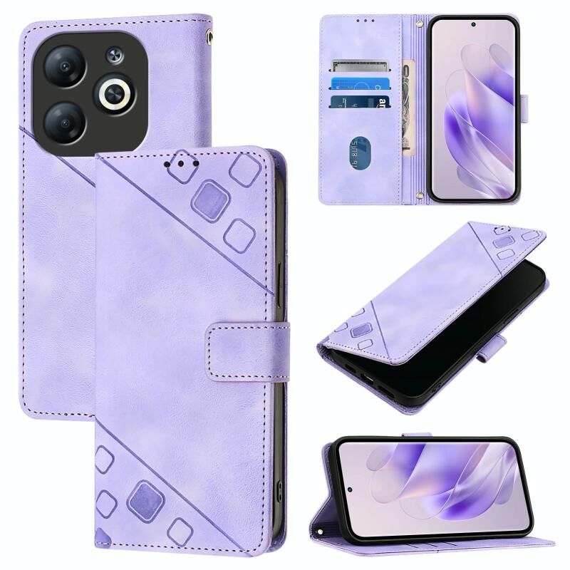 Για Infinix Smart 8 δέρμα αίσθηση ανάγλυφο δέρμα τηλέφωνο υπόθεση (Light Purple)