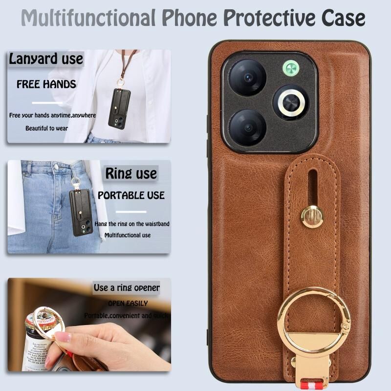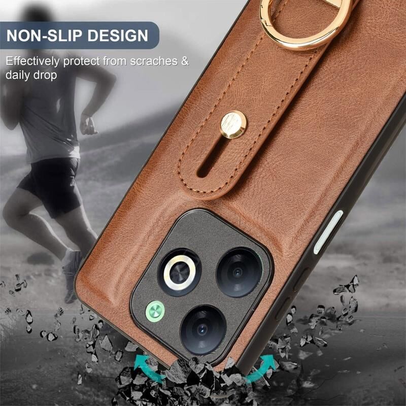 For Infinix Smart 8 Wristband Leather Back Phone Case(Brown)